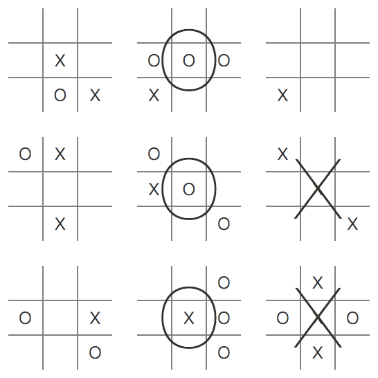 By now you hopefully have a gist of how moving works in ultimate tic tac toe. There are some interesting strategies that come into play as a result of these rules. Let's fast forward a couple of turns.